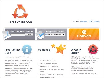 OCRonline è un servizio online che integra un avanzato sistema di gestione via web per applicare una scansione OCR (optical character recognition) e trasformare e convertire documenti scansionati in testo editabile. Il servizio funziona direttamente online e può processare documenti di ben 153 linguaggi diversi