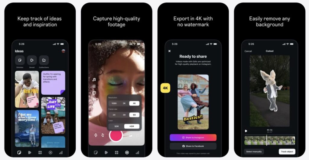 Caratteristiche principali di Edits: strumenti versatili e integrazione con Instagram
