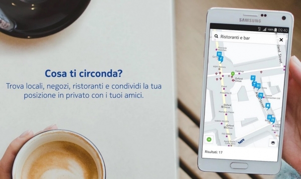 Here permette di scoprire i luoghi, creare itinerari, trovare ristoranti oppure hotels (o qualsiasi altro esercizio commerciale) in zona e tracciare il percorso per arrivarci.