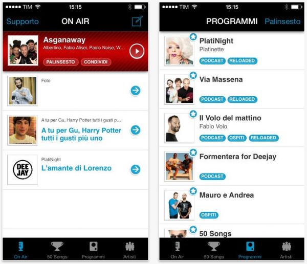 Dentro anche la possibilità di scorrere la gallery, guardare i video, consultare le foto con informazioni di tutti gli ospiti dei programmi. E’ presente anche la 50 Songs con l’elenco delle canzoni più trasmesse e la selezione dei podcast per riascoltare le puntate delle trasmissioni