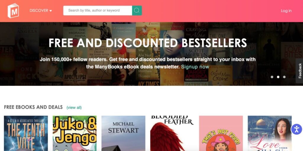 - ManyBooks: vasta biblioteca con oltre 50.000 ebook di generi diversi.