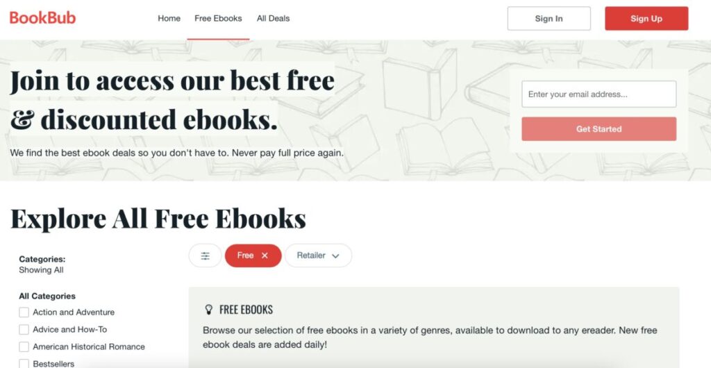 - Bookbub: ebook gratuiti senza limiti e sempre aggiornati.