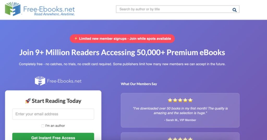 Free Ebooks offre una vasta gamma di titoli in categorie come narrativa, saggistica, testi accademici e classici. Per scaricare gli ebook gratuitamente è necessario creare un account, che permette fino a cinque download al mese in formato PDF. Per un uso più intenso, è disponibile un abbonamento VIP a pagamento che sblocca download illimitati e formati aggiuntivi. Adatto a chi legge saltuariamente e vuole fare nuove scoperte con un semplice accesso gratuito.