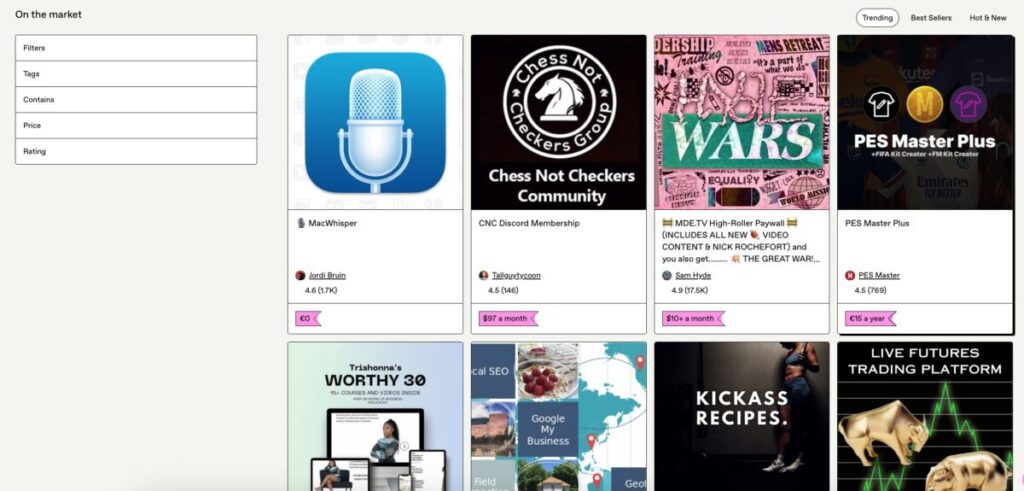 Gumroad è una piattaforma digitale pensata per facilitare la vendita online di qualsiasi tipo di prodotto, dai contenuti digitali come video lezioni e tutorial, fino a prodotti in abbonamento mensile o vendite una tantum.
