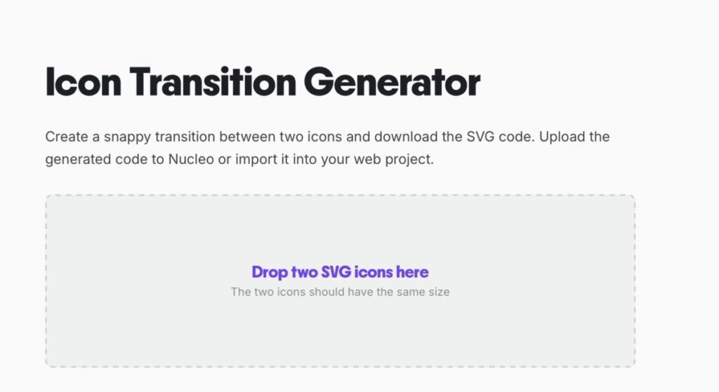 - Icon Transition Generator: Crea animazioni di transizione tra due icone SVG con interazioni clic o hover, esportando il codice JS.
