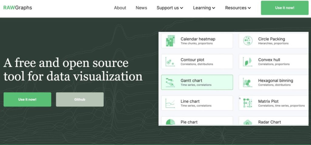 - RAWGraphs: Convertitore di dati tabellari in visualizzazioni SVG complesse come diagrammi a raggi, dendrogrammi o hull convex.