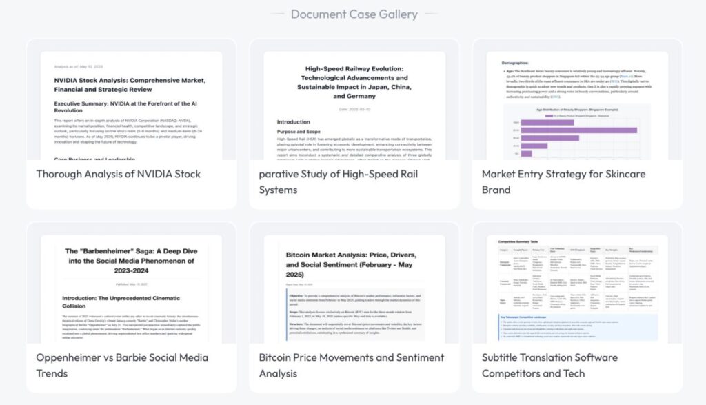 Grazie a una piattaforma che sfrutta agenti AI avanzati e ricerca profonda, trasforma semplici istruzioni in documenti, presentazioni, fogli di calcolo, podcast e pagine web.