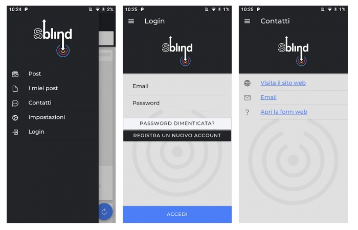 Immaginiamo -spiega sempre Francesco – di avere il paese mappato con 107 aree ben definite, le nostre città/province, Sblind rappresenta la App con la quale posso scoprire 107 social differenti tra loro. Sblind funziona apparentemente come un normale social media: dopo aver scaricato gratuitamente la App Sblind e aver attivato il proprio account, è possibile caricare i post o visualizzare i contenuti pubblicati dagli altri utenti. Nei prossimi mesi sarà messa a punto anche la versione inglese oltre alla pubblicazione di importanti upgrade in merito alla possibilità di Utenze Business e Chat vocale.