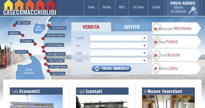 Oltre 400 case in vendita ai Lidi di Comacchio, ampia scelta di appartamenti e villette per vacanza o residenziali, nuove costruzioni e rustici e case di campagna nelle limitrofe zone dei Lidi. (d.a.)