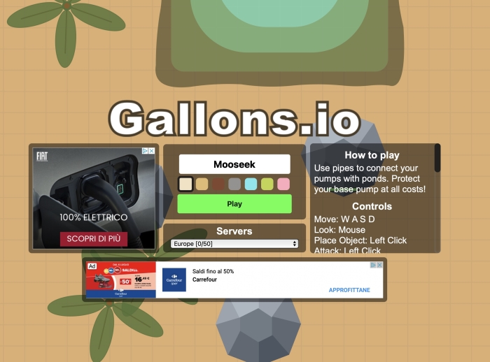 Gallons.io è un gioco di logica ed allo stesso tempo un gioco di azione. Lo scopo è muoversi in maniera precisa in un vasto territorio usando il piccone per scavare i buchi cosi da posizionare sapientemente i tubi.