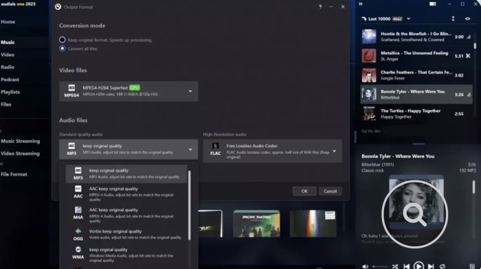 Con Audials “Music – Load”, Audials esegue la scansione di Spotify, Amazon Music, Soundcloud e piattaforme video. Basta selezionare una canzone, un album o un artista e Audials presenterà rapidamente e chiaramente tutte le versioni disponibili, suggerendo automaticamente la versione migliore.