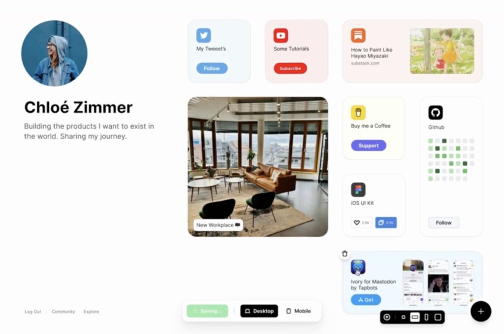 Nato con l’obiettivo di sostituire i tradizionali link in bio con una pagina personale ricca di contenuti, Bento permette di raccogliere tutti i propri link, media e prodotti in un unico spazio accessibile con un link unico.