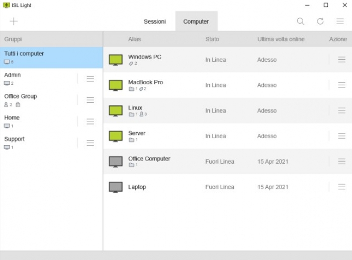 Il pannello di controllo di ISL Light permette di gestire più device ricordando utente e password per ognuno di esso cosi da accedere immediatamente all’assistenza. Per migliorare la qualità del lavoro è anche disponibile un controllo risorse per gestire risorse e pesi di ogni singola funzionalità