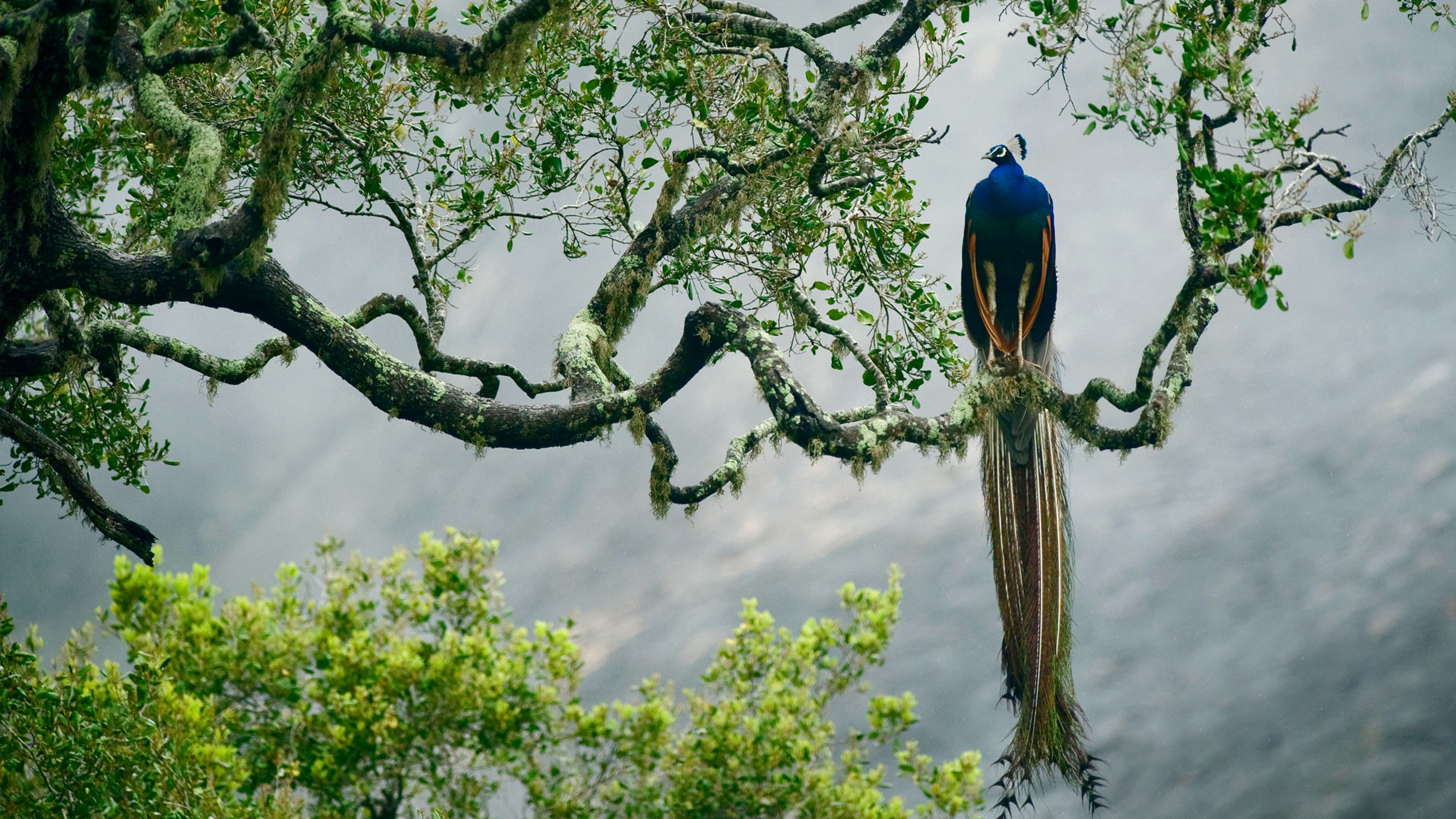 Questo Sfondo dedicato ad un bellissimo pavone indiano su un albero ha una risoluzione di 3840 x 2160.. E' appartenente alla categoria Natura