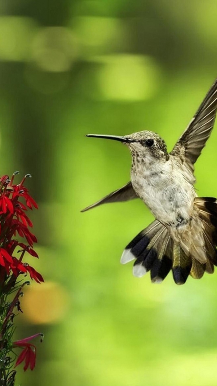 Sfondo dedicato ad un colibri volante verso il fiore in hd