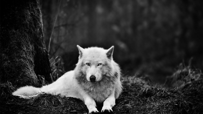 Sfondo dedicato ad uno stupendo Lupo Albino in 4k