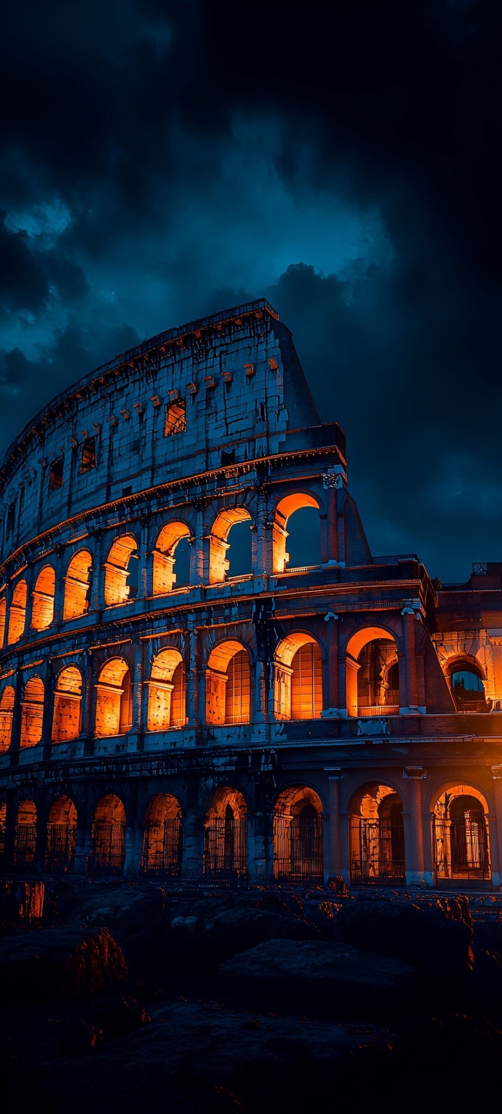Sfondo dedicato al Colosseo di Roma con luci di notte