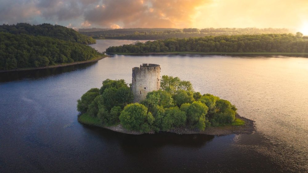 Sfondo dedicato al castello Cloughoughter in Irlanda al tramonto